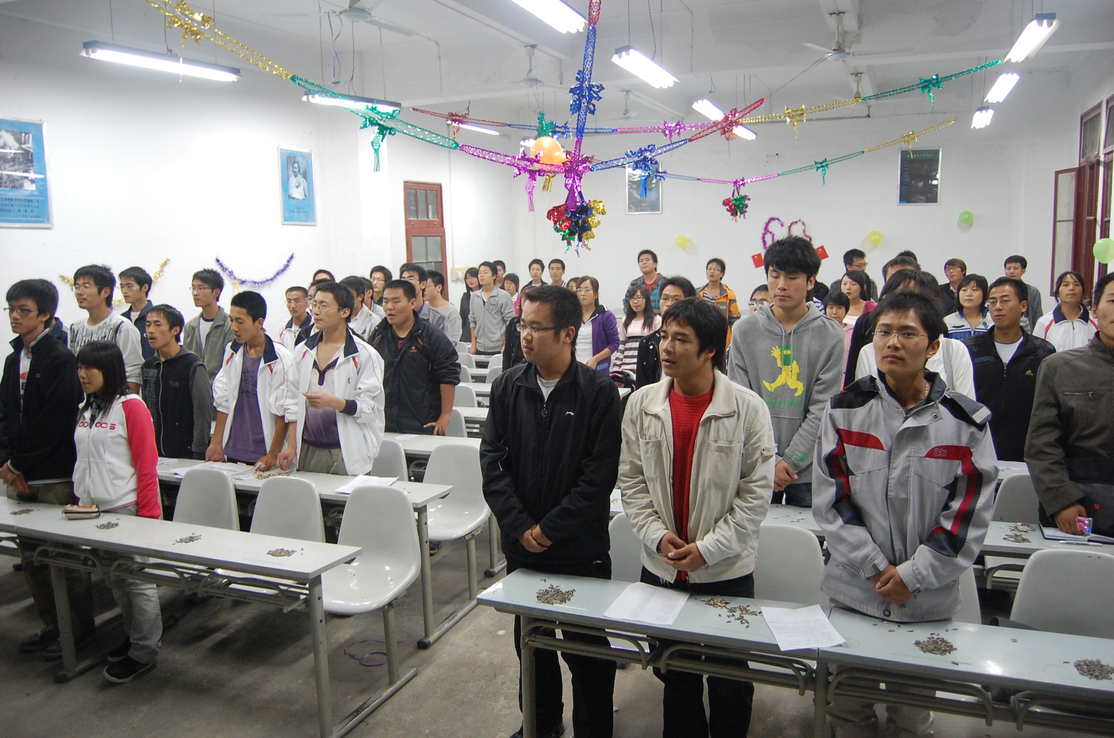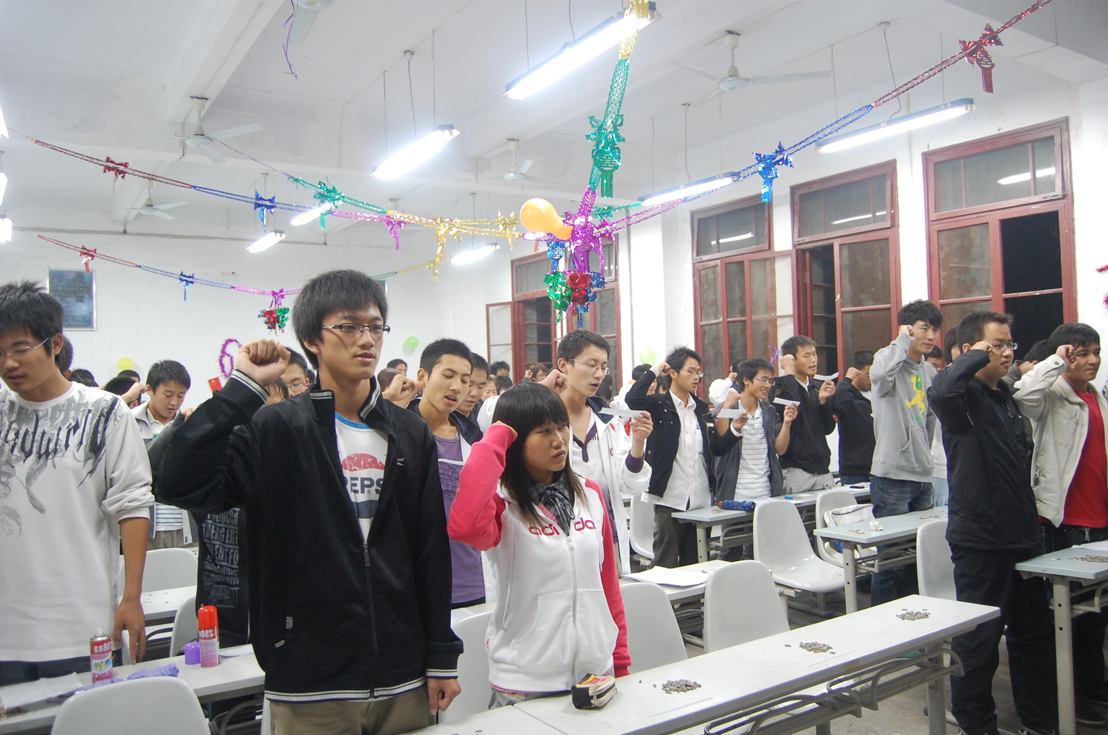 为了庆祝祖国六十华诞,增进同学友谊,10月8日晚Happy漫画 软件工程专业和计算机科学与技术专业分别在N3309和N3206举办“爱国歌曲大家唱”团组织生活。Happy漫画 团工委书记安中立老师和部分学生会干部参加了这次联谊晚会。
