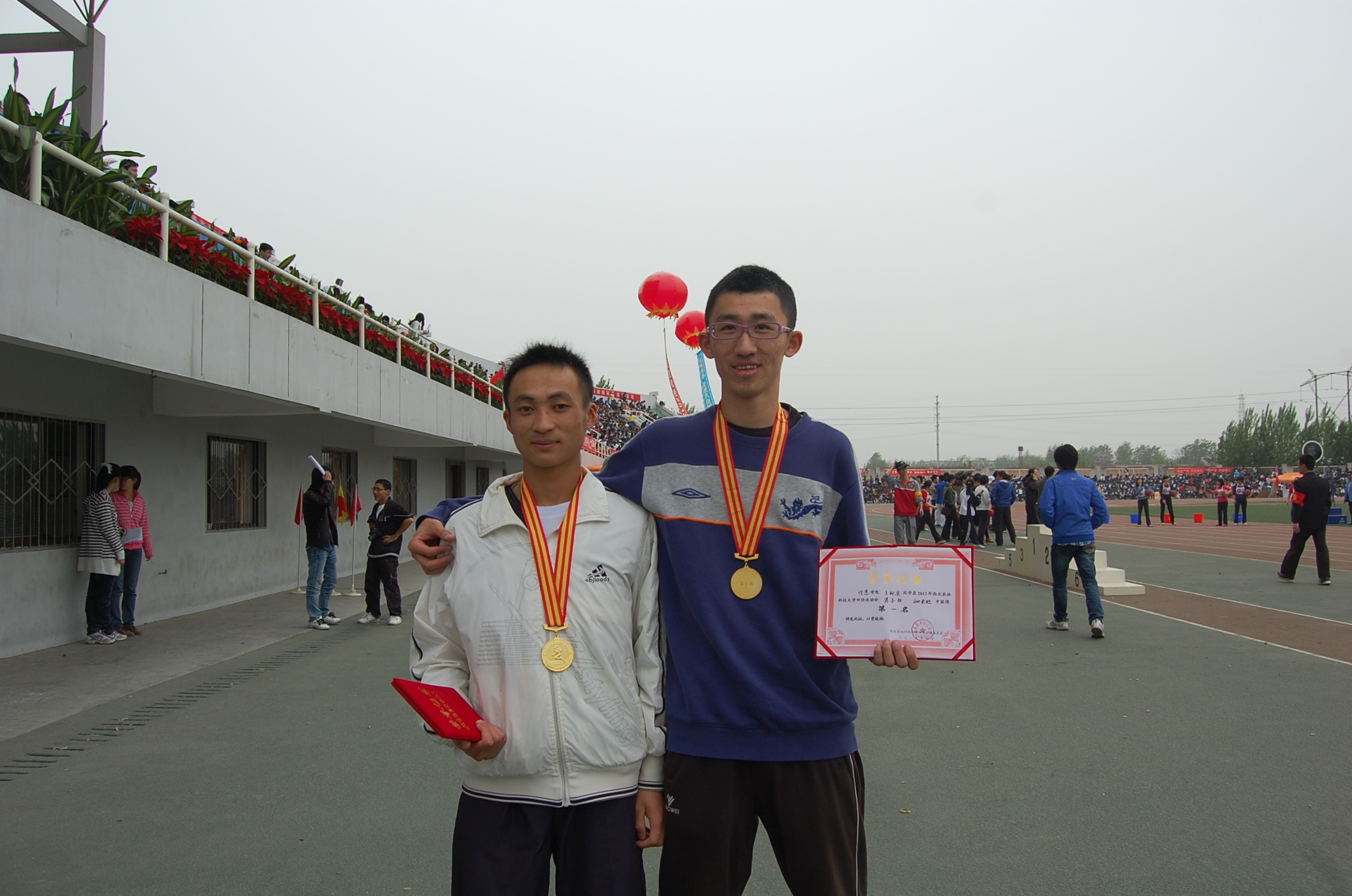 19日上午,Happy漫画 何李军同学在男子800m预赛中,表现出了十足的信心,以预赛第一名的成绩轻松晋级决赛。下午三时左右,何李军同学再次出征,枪声一响,何李军同学如离弦的箭一样奔向终点,两圈过后,何李军同学以明显优势成功问鼎男子800m比赛。赛后校宣传部副部长闫德忠和校党工委副书记赵阿兰为何李军同学颁发金牌和奖状并合影留念。