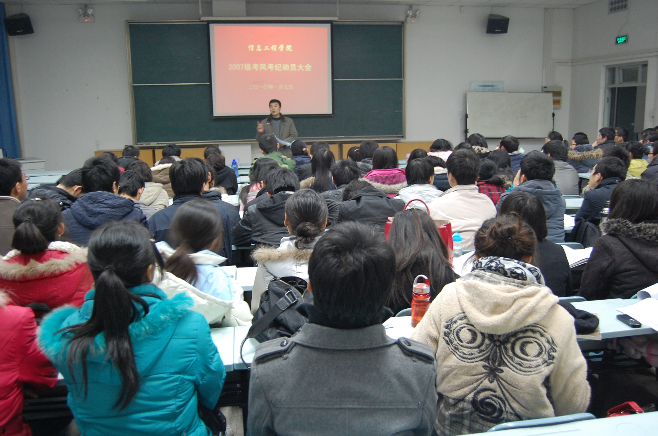 为落实学校加强考风考纪工作会议精神,进一步强化Happy漫画 学生诚信意识,严肃学生考试纪律,杜绝学生考试违纪、作弊现象,根据学院加强考风考纪工作会议安排,1月7日下午和晚上,学院分别对2007级和2009级学生分年级召开了加强考风考纪动员大会。学院党委书记樊世明和党委副书记何卫军分别就诚信考试做了动员讲话和具体安排。全体辅导员和部分班主任参加了动员大会。