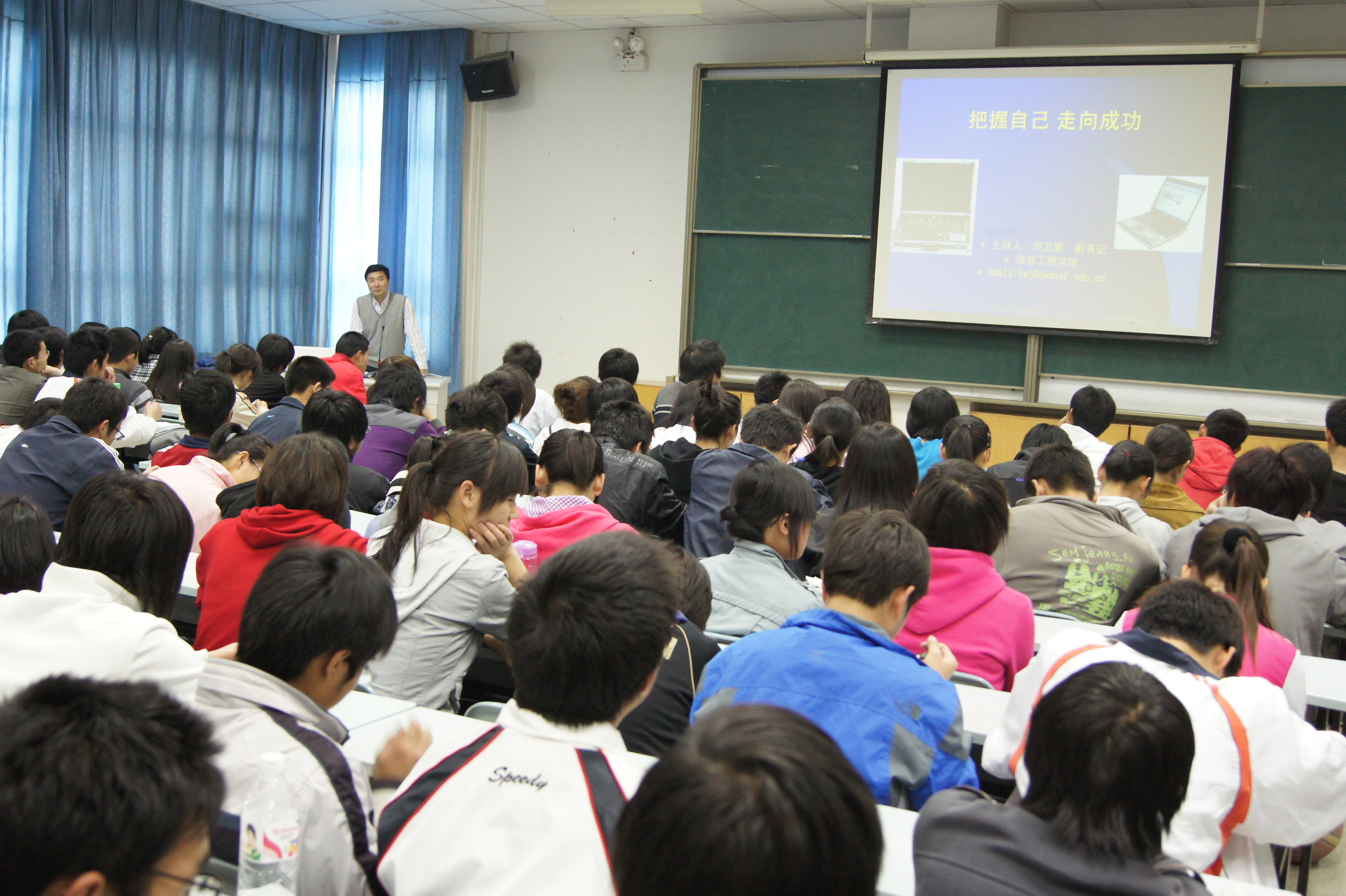 为了进一步调动同学们的学习积极性,增强学习信心,4月15日,学院党委副书记何卫军老师在学院多媒体教室为2009级全体学生做了一场《把握自己,走向成功》的报告。