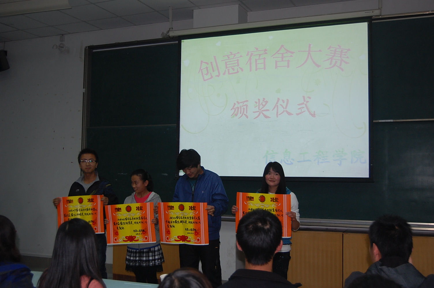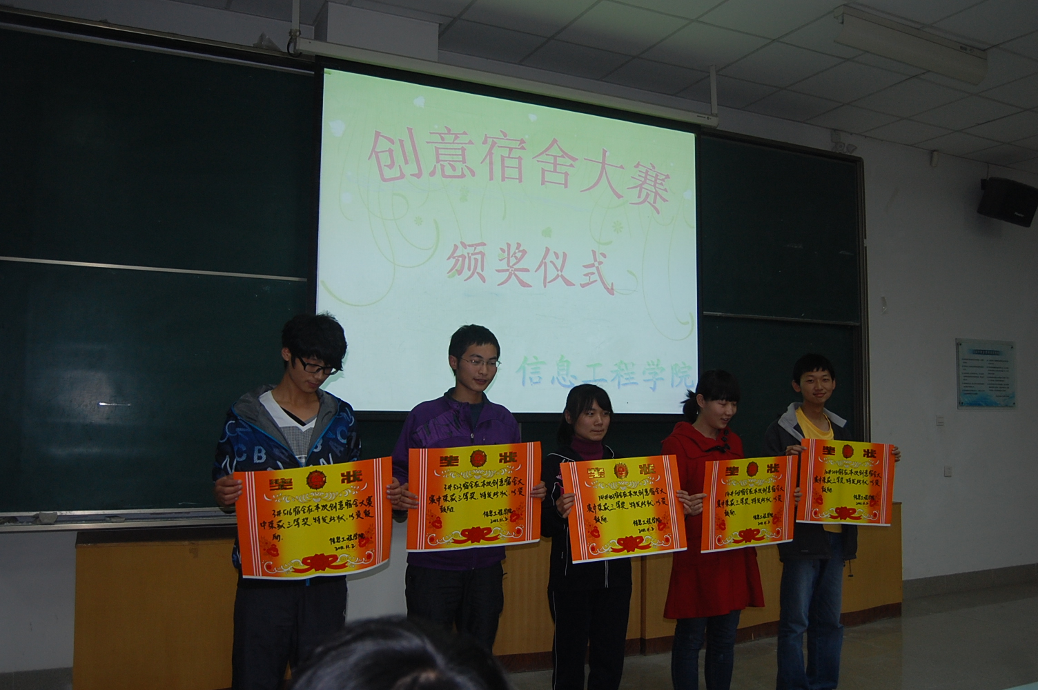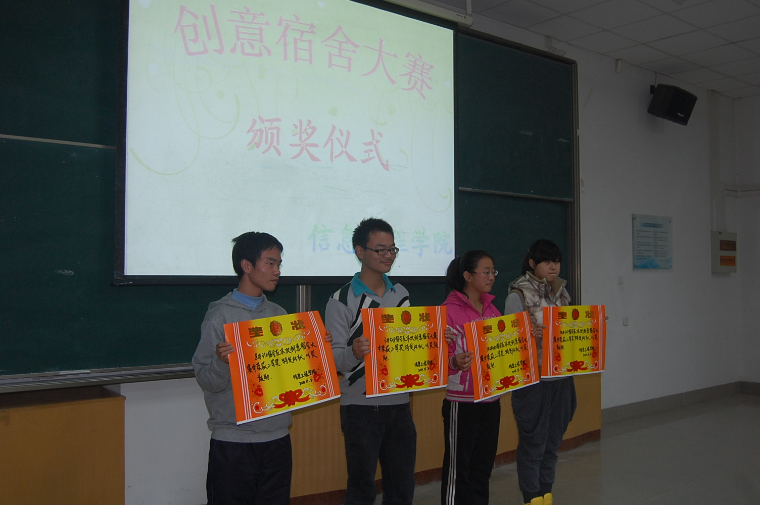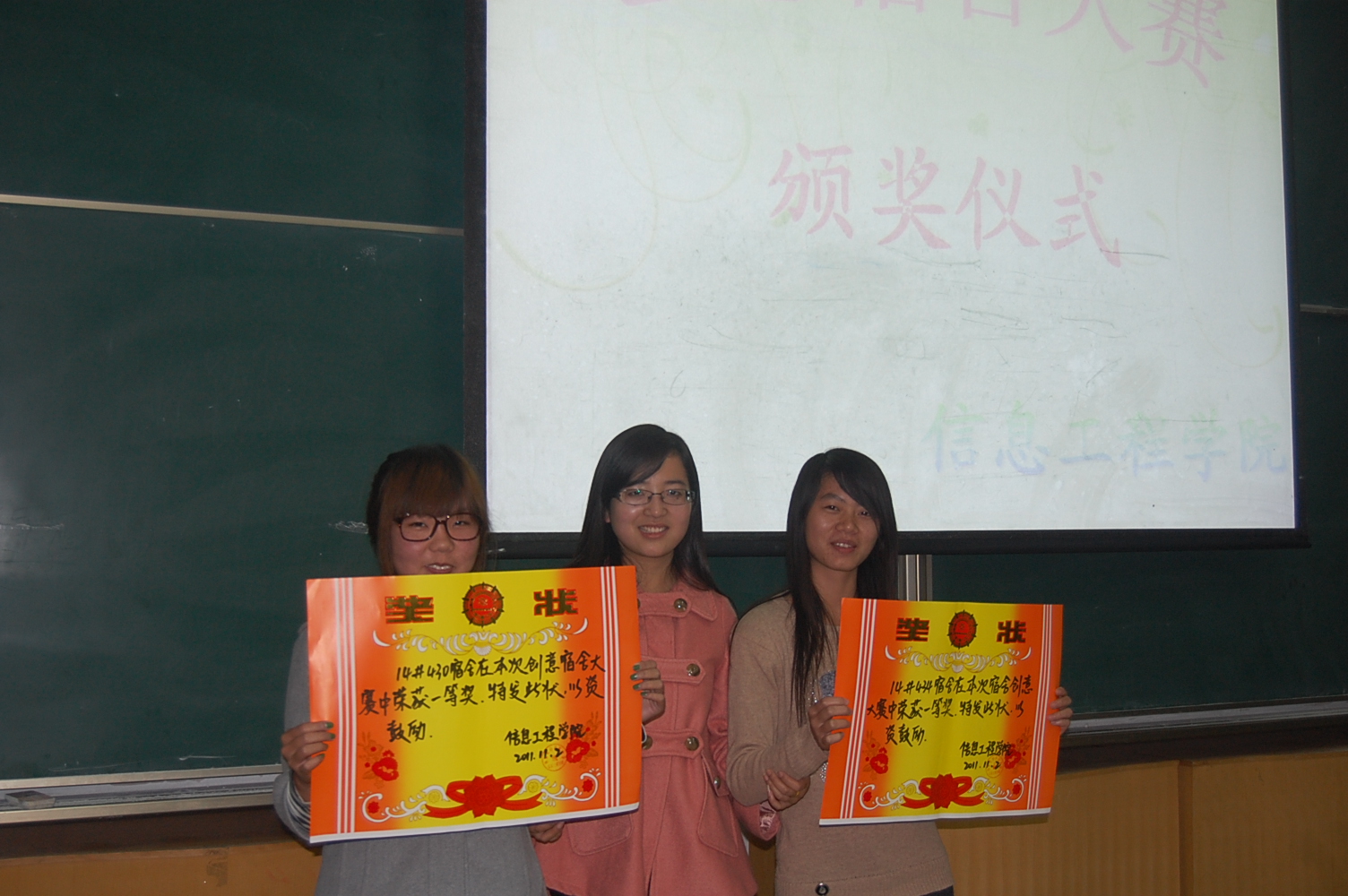 11月2日下午,Happy漫画 在M2教室举行了2011级“创意宿舍”大赛颁奖仪式,辅导员倪玲老师、校学生会生活部副部长付婷婷以及到场的各院生活部部长为15个获奖宿舍颁发了奖状。