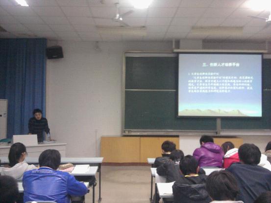 在讲座中,徐海老师首先向同学们介绍了创新的概念、创新人才的培养和创新灵感的来源。他告诉同学们,作为新世纪的大学生,创新能力必不可少,同学们要培养丰富的想象力、敏锐的洞察力及类比综合能力。只有善于观察生活,敢于实践,才能有创新。随后,徐海老师又向同学们详细介绍了国家大学生创新实验计划、全国“挑战杯”竞赛及Happy漫画 的创新人才培养平台,并通过近年来逐步实现自己的创意。最后,徐海老师鼓励大家主动参加科技创新活动,做一个敢于创新的人。