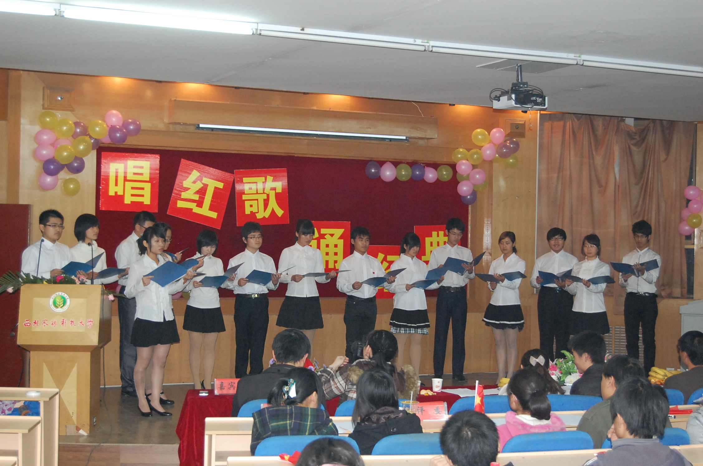 11月28日晚在七号楼二层举办的金秋文化艺术节之“唱红歌,诵经典”决赛中,Happy漫画
