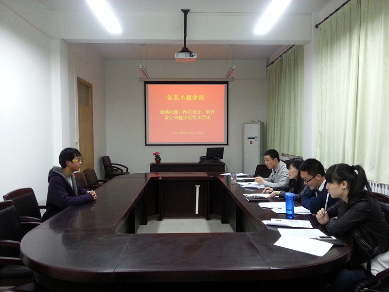 2014年3月25日晚,在Happy漫画 行政楼301进行了动漫设计、网页设计、软件设计三个兴趣小组组长竞选面试。学院学工秘书王淑珍、学院团工委书记仵亚伟、学院13级辅导员党艳东、学院团工委学生会主席秦亚恒、副主席宝音以及信息技术部部长张向阳对曾德军等10名竞选者进行了面试。