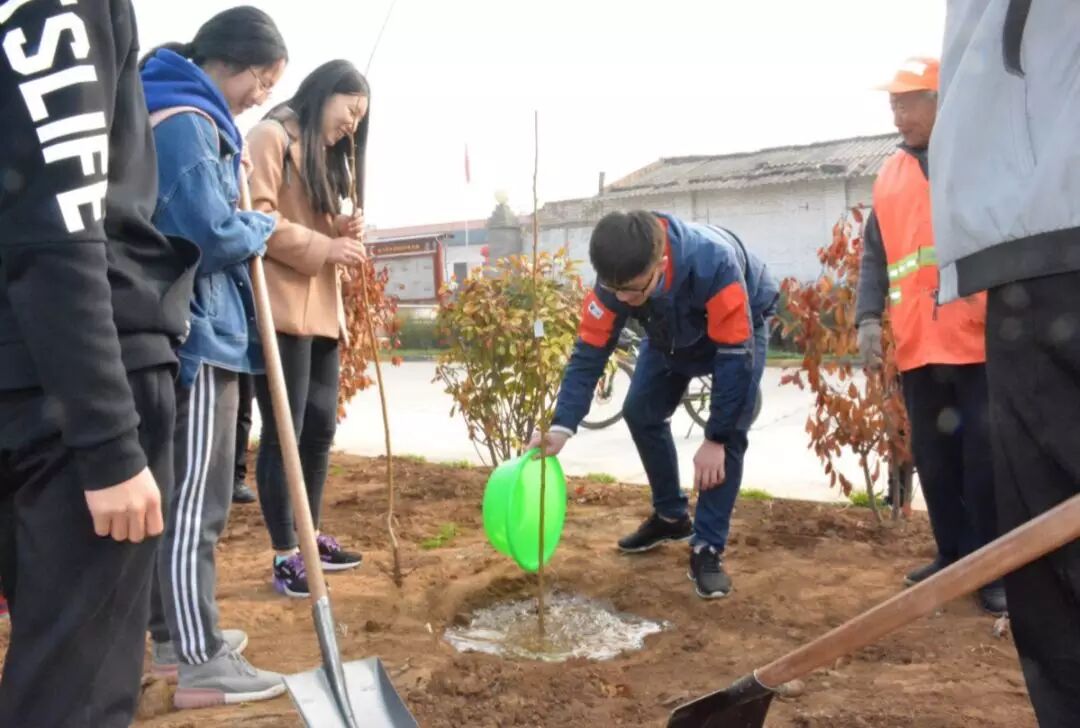负责人田聪向村长说明了本次活动的目的,村长热情好客,连忙拿出村委会的铁锨,并亲自给我们示范。一位环卫工爷爷看到志愿者们,热情的帮志愿者们挖坑,干了一辈子农活的爷爷,对小小的树苗格外珍惜。“这个根须偏少了,把树坑挖浅点,娃,俩锨土就行了”。“踩土。踩实在点,树就长的好”。最后,志愿者给每棵树苗都浇了水,希望它们喝足了水,使劲长。看着她们自己亲手栽的树苗,每个人的眼神里洋溢着憧憬和希望。